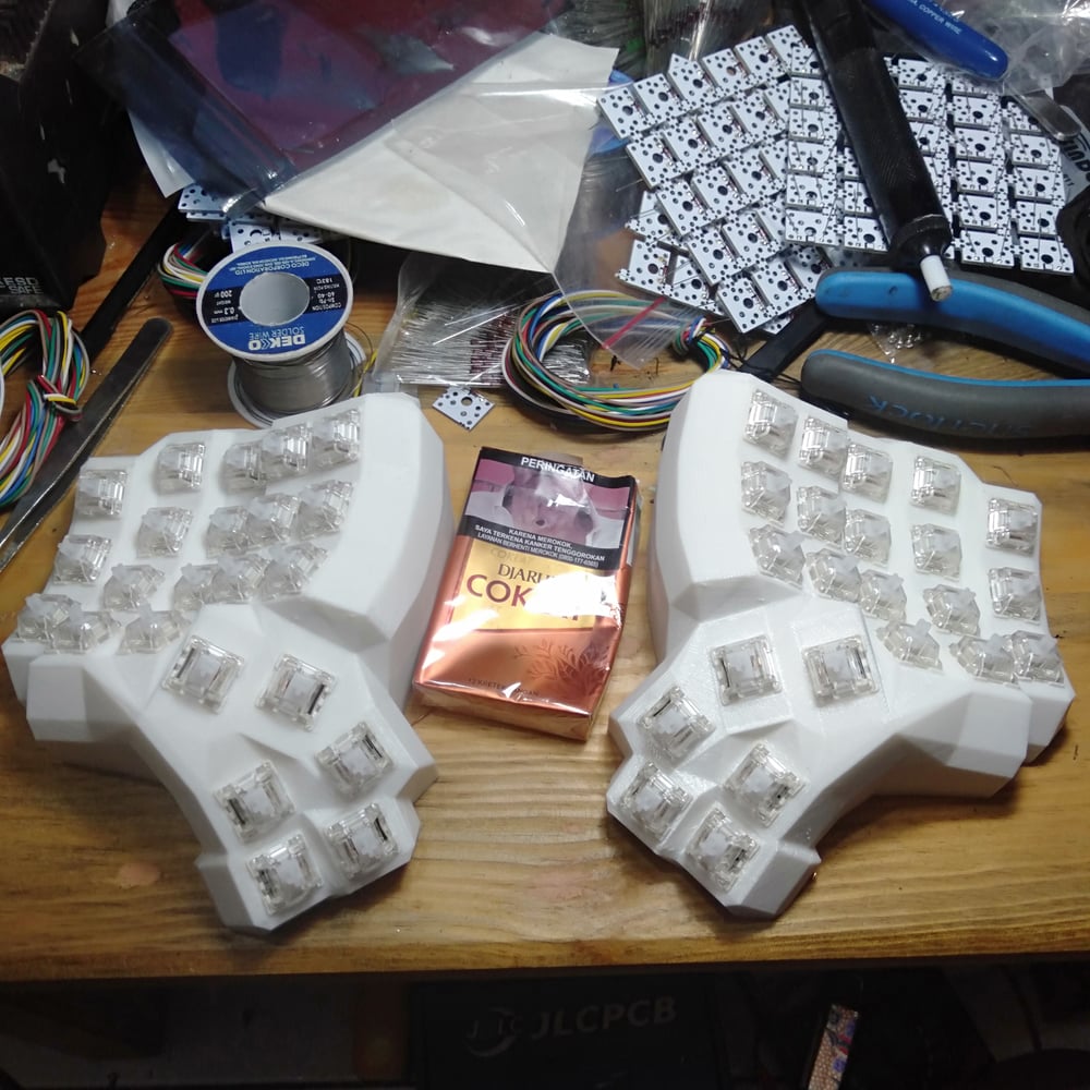 Just your plain old dactyl manuform 4x5 (or 4x6) with switches fully built. Yes, you read that right. Fully built.